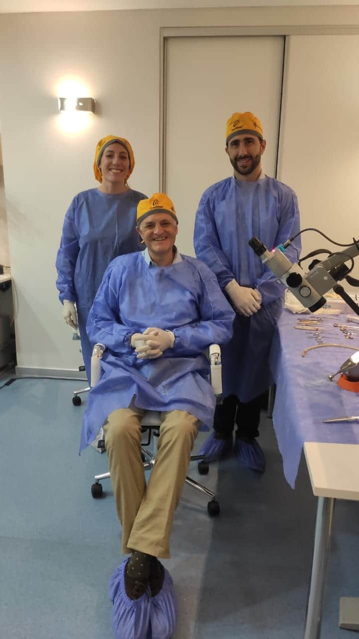 Respetando los protocolos sanitarios, cirujanos y el equipo de Tecnosalud y Cochlear recibieron con alegría al médico español en un evento presencial, que se desarrolló en un clima de intercambio científico y cálida camaradería.